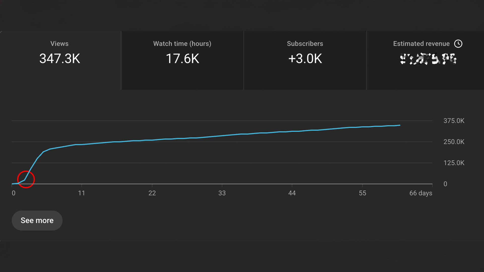 This thumbnail went through several iterations before I landed on the final version. The key improvement was refining the text to be clearer and more specific “Electrostatic Fusion”. The circled point in the analytics shows when I updated the thumbnail with that change — and when view velocity and growth significantly increased.